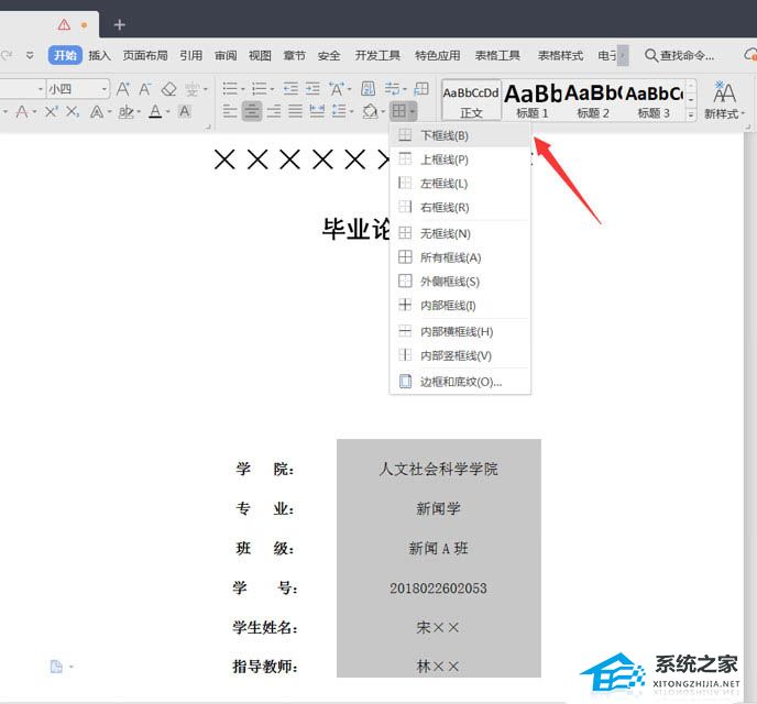 最后选中右侧表格内容,在边框选项中选择【下框线】。