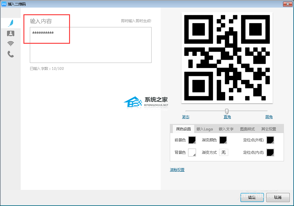 5、在弹出的窗体中,输入二维码所需要包含的内容如下图所示。