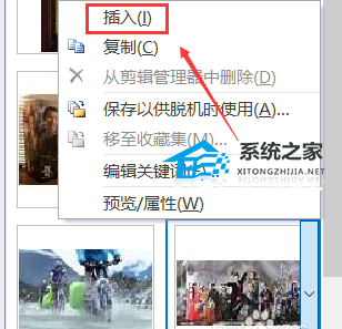6、点击所选图片的右侧的下拉框,选择”插入“,即可添加到文档中。