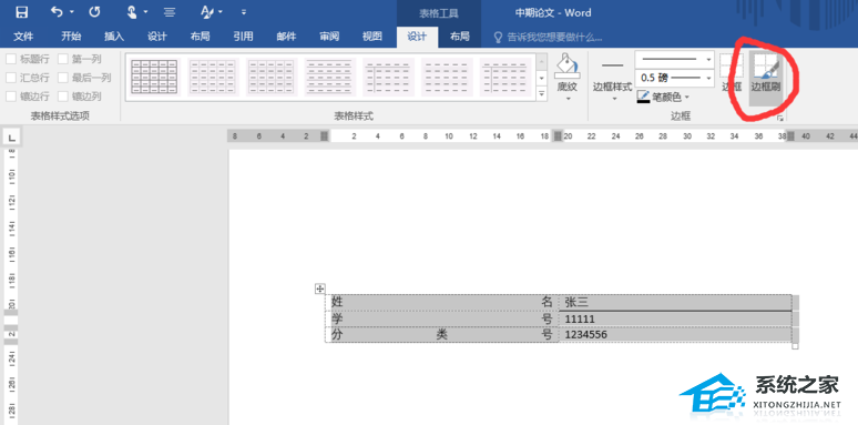 5、选中所有表格,点击边框刷,将所需要的三个底线点击即可。