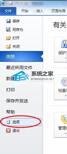 4、单击菜单中【文件】,在界面列表中选择【选项】命令,打开【word选项】对话框。