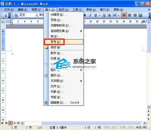 2、点击插入工具以后出现下拉菜单,在下拉菜单上面点击符号。