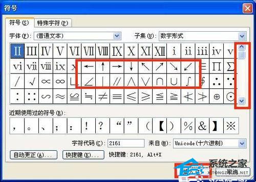 3、点击符号以后出现符号窗口,然后在符号窗口上面点击符号,然后再通过点击滑动右边的光标找到箭头符号,点击要插入的符号然后点击插入按钮即可。