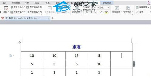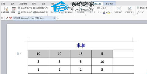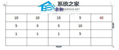 1、如图所示,word文档中有一个简单的表格,要求第一行中所有数据的总和。