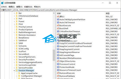 3、然后依次打开i注册表中的:HKEY_LOCAL_MACHINESYSTEMCurrentControlSetControlSession Manager,操作如下。