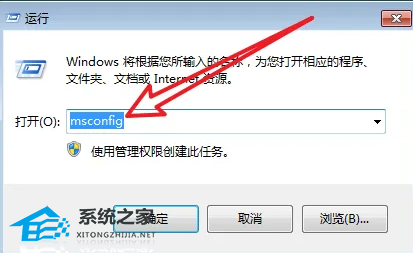 2、输入msconfig指令,回车确定。