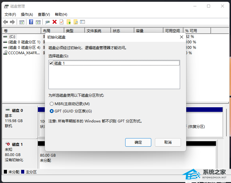 注意:格式化的磁盘,会变成未分配空间,需要进入磁盘管理进行设置。