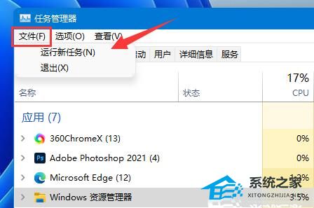 2. 打开后,点击左上角“文件”,点击“运行新任务”。