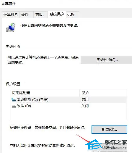 5、接着继续点击下方“创建”选项来给系统创建还原点。