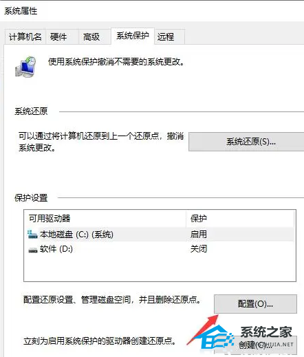 3、打开后找到你想要还原的驱动器,一般是还原系统盘c盘,选中后单击“配置”打开。