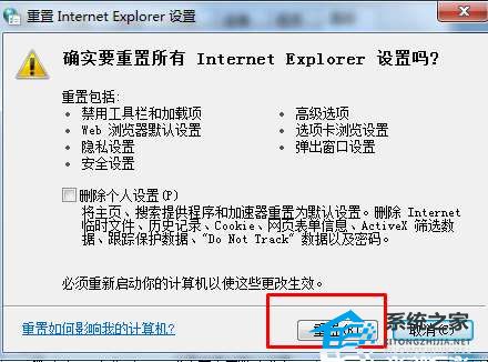 5、点击之后会弹出一个警告窗口,像我们确认是否重置,我们直接点击“重置”按钮。