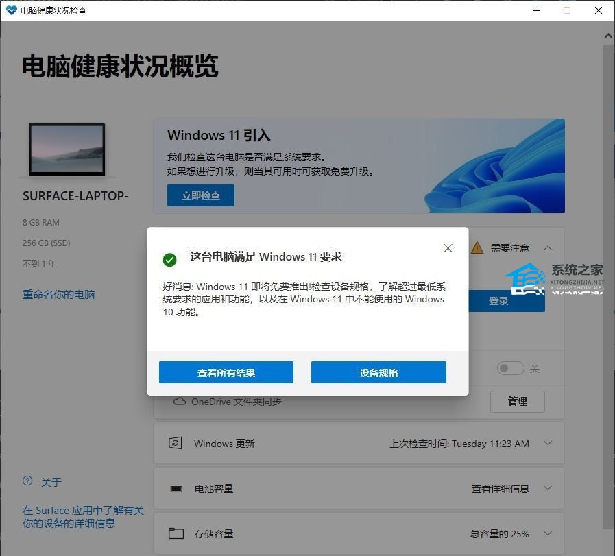 2. 点击立即检查,它将报告检查结果,如果符合要求,就提示下图,那你就可以直接升级Win11。