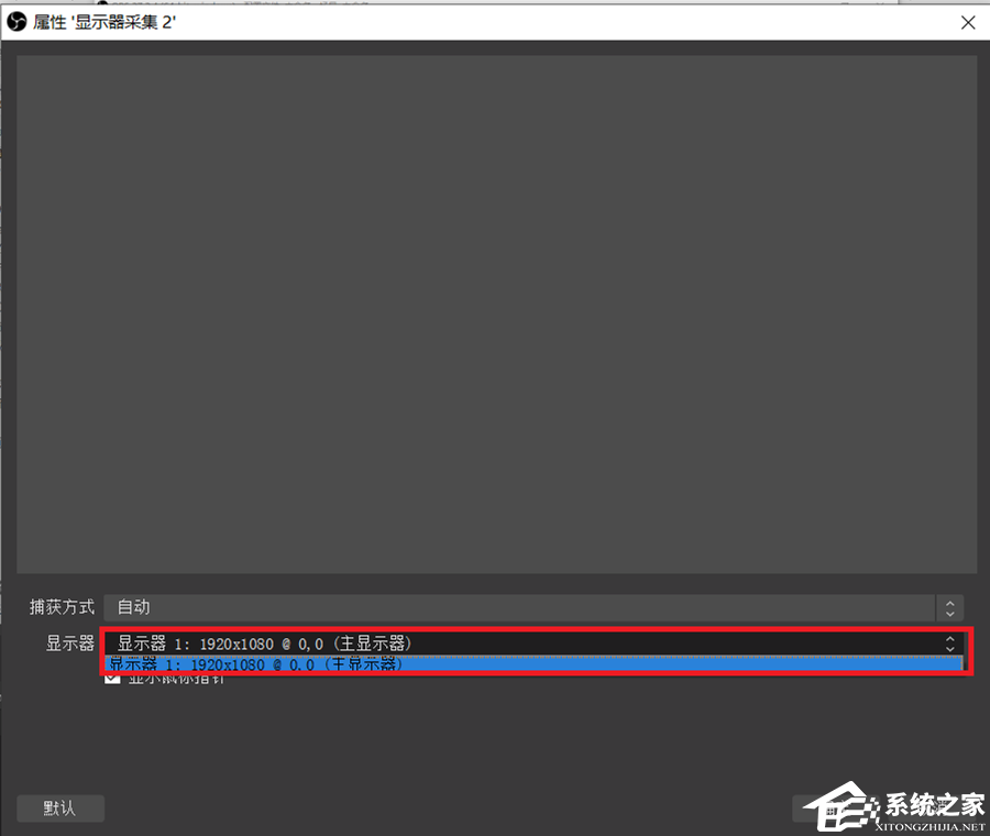 点击确定后,来源里选中我们生成的“显示器采集”,之后OBS就开始显示了。