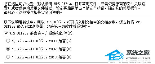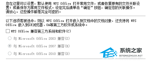 5、将WPS OFFICE兼容第三方系统和软件前面的勾去掉。