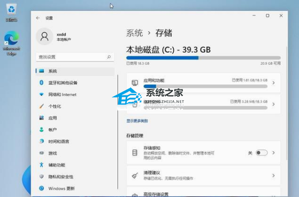 3、向下滚动右侧的设置菜单并从列表中选择存储。系统将进行快速扫描,以确定哪些临时文件和其他可移动文件占用了硬盘上的存储空间。