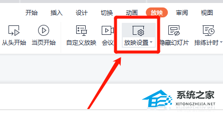 1、新建空白演示文稿后,找到上方的放映菜单。