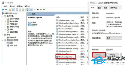 电脑重启之后,我们再去服务里找到“Windows Update”服务,将其启用,再检查更新就可以解决了。