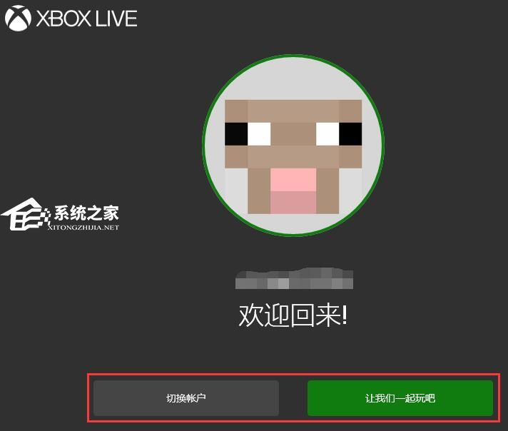 5、如果微软账户已经登录的话,点击“让我们一起玩吧”即可直接登录,或者点击“切换账户”进行登录使用等。