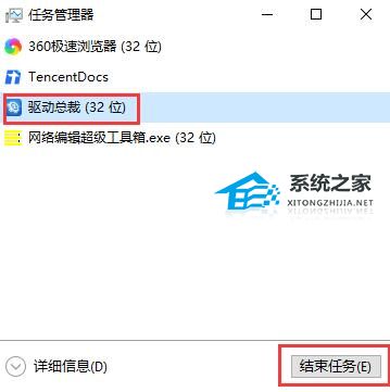 2、打开任务管理器后选择驱动总裁,点击右下方的结束任务。