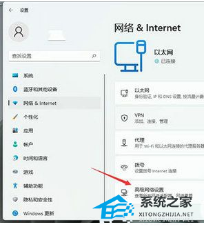 3、进入网络和Internet以后,选择右边的高级网络设置。
