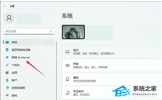 2、在设置中打开网络和Internet。