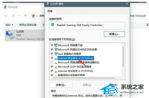 5、属性中找到Internet协议版本4并双击打开。