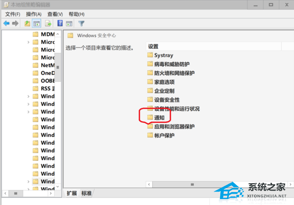 2、点击盘【计算机配置】>【管理模板】>【Windows组件】,右侧找到【Windows安全中心】打开。