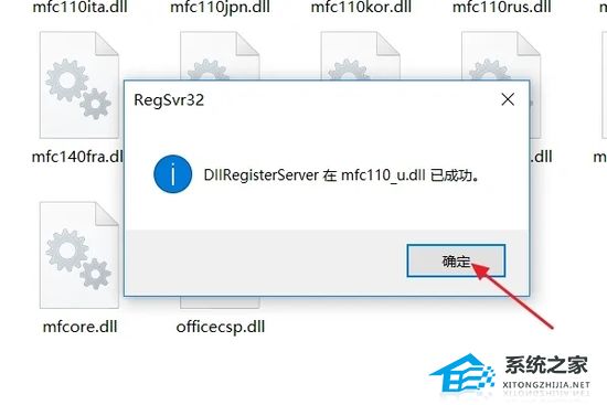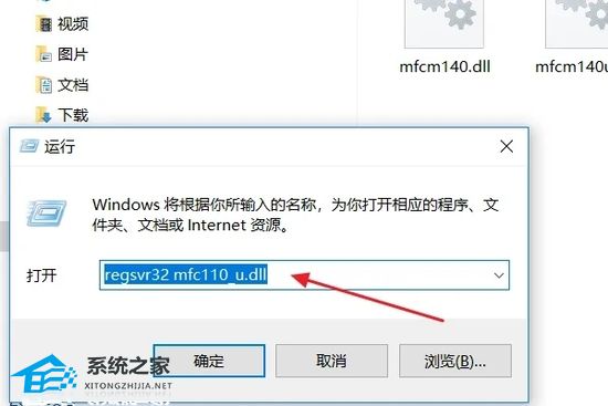 2、使用运行快捷打开按键【win+r】打开运行,输入:regsvr32 mfc110_u.dll,点击确定进行注册。