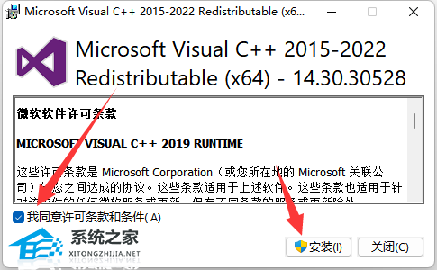 3、运行程序,进入下图所示的安装界面,勾选“我同意许可条款和条件”,点击“安装”。