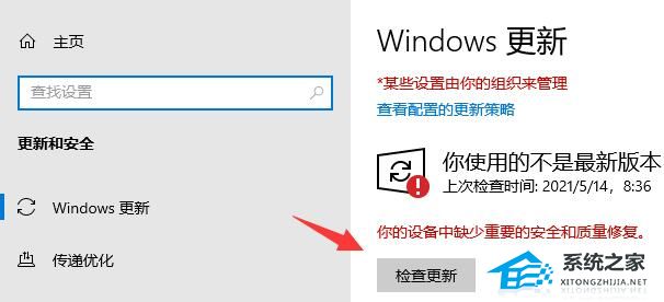 3、然后在windows更新下检查更新,将系统更新到最新版本。