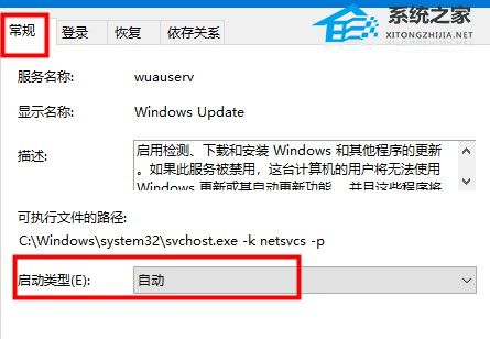 4、在常规选项中——下拉启动类型——选择自动——点击确定。