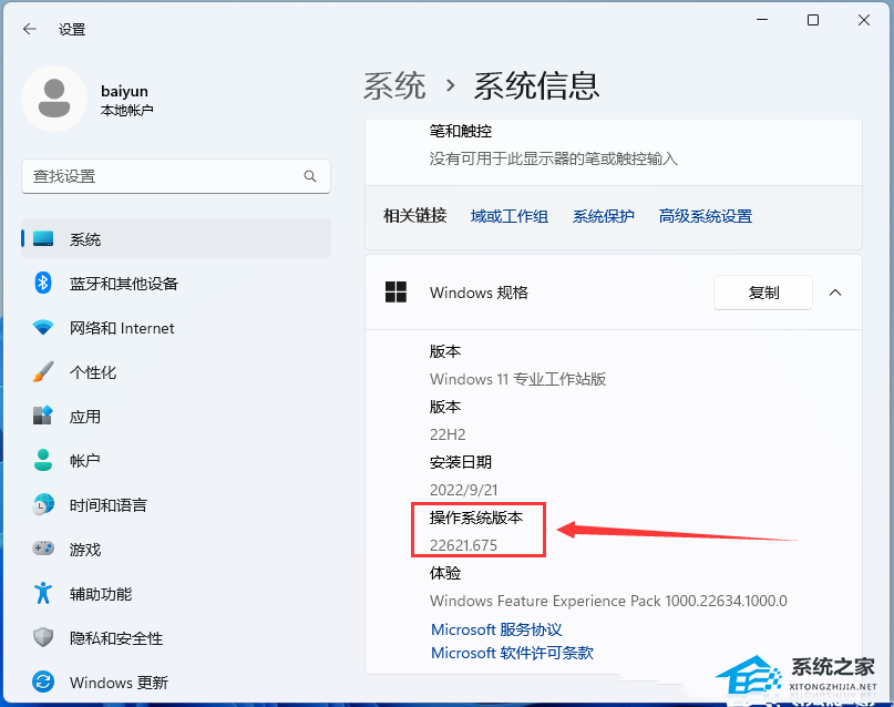1、首先,我们需要确认当前Win11 22H2的操作系统版本,要为【22621.675】;