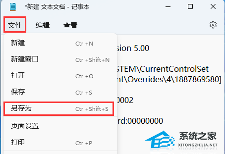 4、接着点击左上角的【文件】,在打开的下拉项中,选择【另存为】,或者按键盘上的【 Ctrl + Shift + S 】快捷键也可以;