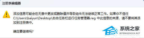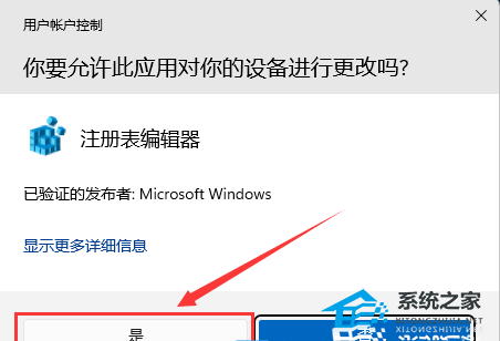 8、注册表编辑器警告弹窗,直接点击【是】;