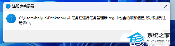 9、注册表编辑器提示包含的项和值已成功添加到注册表,点击【确定】;