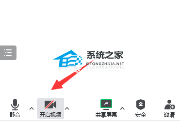 4、如果已经在会议里,那么点击左下角“开启视频”也能打开摄像头。