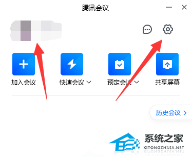 1、首先将腾讯会议打开,点击右上角的“齿轮”打开设置。
