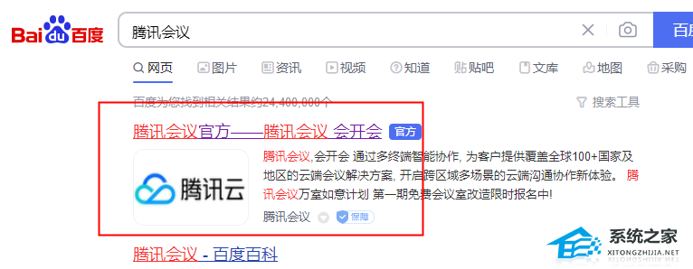 1、电脑端的用户,打开浏览器,在百度搜索“腾讯会议”。