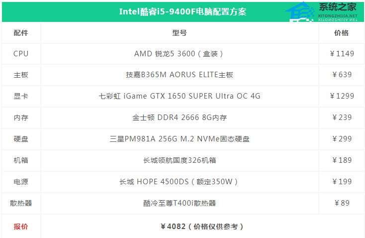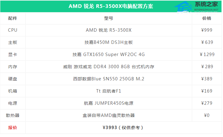 也可以考虑同级别的R5 3500X,性能略有提升,并且价格更实惠。这套电脑配置采用的显卡是GTX1650 Super独显。