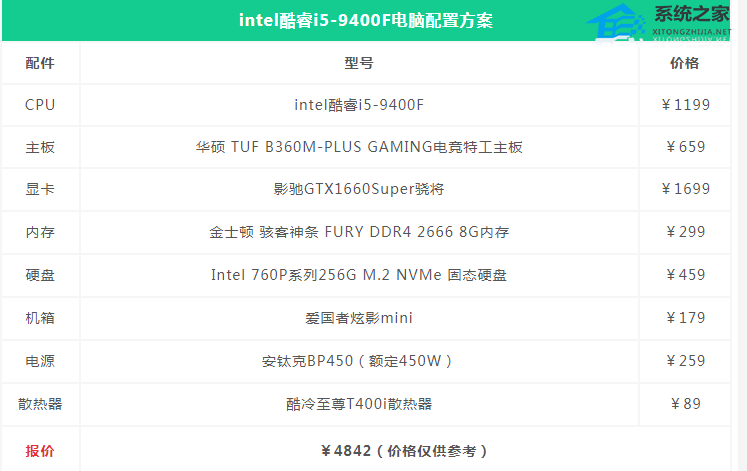 2、性能的话I5 9400F配合华硕主板,索泰1660显卡,8GBX2的金士顿内存条。