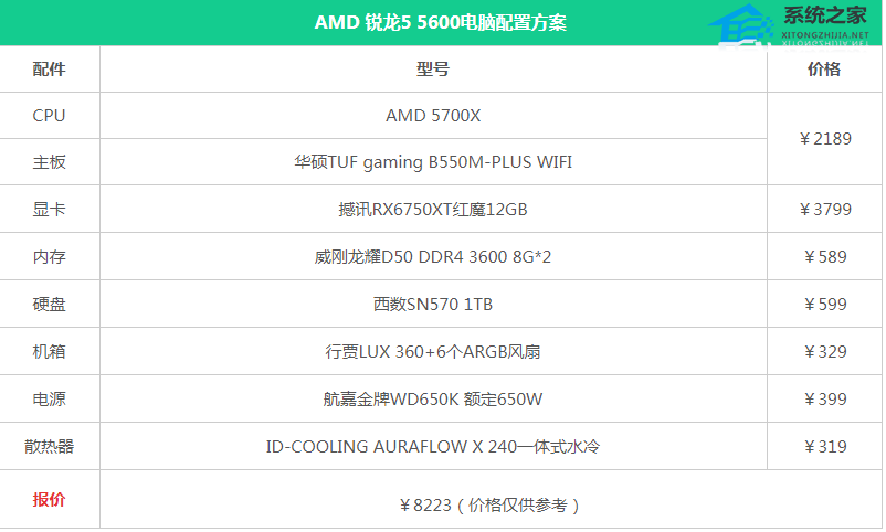 本配置清单采用AMD 5700X,套装选择了搭配微星华硕TUF gaming B550M-PLUS WIFI主板。