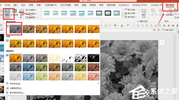 将图片复制一张并移动到旁边-点击图片-图片格式-颜色-灰色。