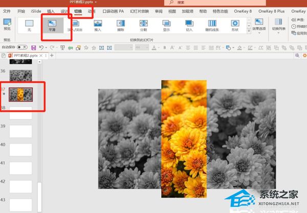 同样给第三张PPT添加切换-平滑切换动画效果,点击右下角的预览就可以看到效果了。