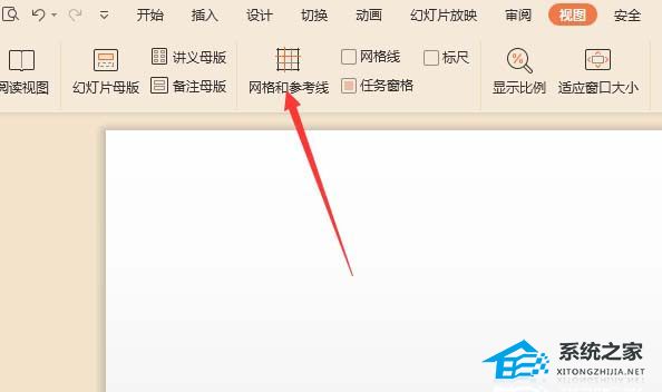 1、首先我们打开PPT,这个时候我们看到的ppt是个空白的版面。我们要在版面上显示网格。