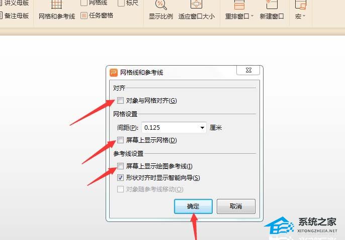 5、我们设置好相关项目和参数后,点击确定按钮即可以了。既然要显示网格,网格设置和参考线设置一定要打勾,当然参考线设置的最后一项随便你。