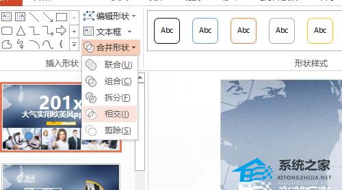 先选中圆形再选中内容,点击合并形状-相交即可。