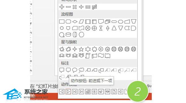 具体方法如下:打开PPT,直接在后一张幻灯片上插入一个动作按钮。一般我们选“前进或下一项”动作按钮。