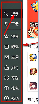 3、进入逍遥市场后,点击左侧“搜索”,在搜索栏中输入想要下载的软件。
