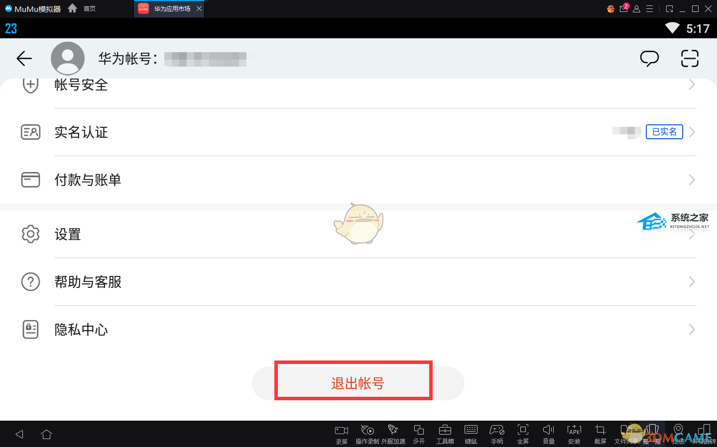 7、如果想要退出登录,点击账号头像图标后,页面滑到最底部,找到并点击退出账号,之后就可以登入其他华为账号了。