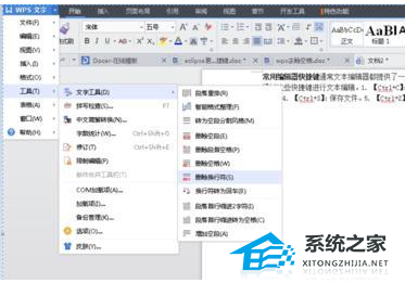 左上角的菜单键工具文本工具删除换行符重复前面的步骤删除空格。
